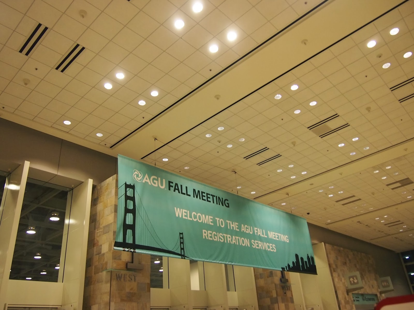 From charges lying on bacteria in the ground to kilometer-sized gravity anomalies on the moon, geoscience is HUGE. The AGU Fall Meeting is huge too, but maybe on a couple orders of magnitude less than huge. The amount of coffee consumed here is HUGE, but not as huge as the amount of knowledge consumed. There are so many talks on so many topics, and a million (I may be off on my estimate) more posters on more topics. The titles of said talks and posters have so many words in them. There are thousands of important earth scientists concentrated into a two-block radius. Everything is so big.